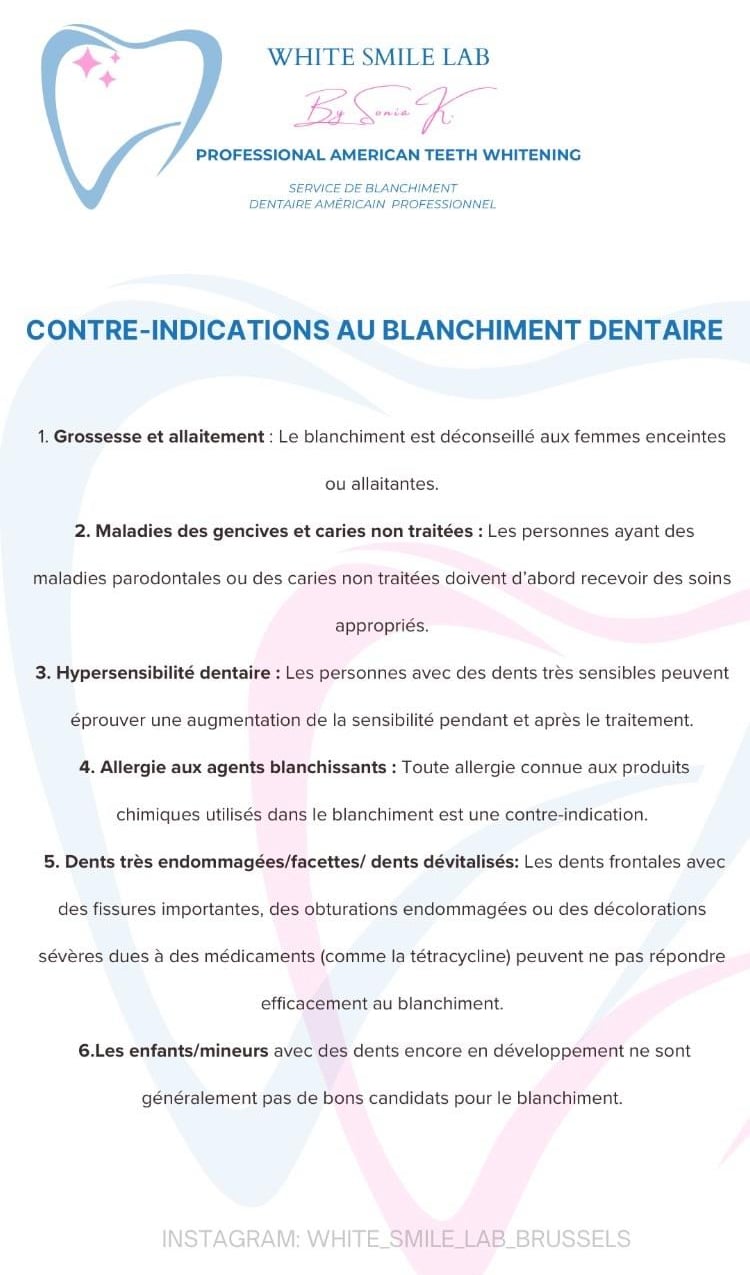 Je suis venue chez WHITE SMILE LAB pour un blanchiment dentaire et je suis ressortie bluffée par le résultat ! Mes dents sont visiblement plus blanches dès la première séance, sans aucune douleur. L’ambiance est apaisante, très professionnelle, et Sonia est vraiment douce et rassurante. Je recommande à 100 % ! Merci encore 💎