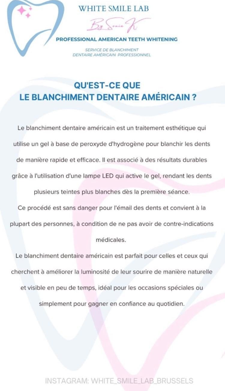 J’ai suivi la formation au blanchiment dentaire américain avec Sonia et c’était au top ! Très bien expliquée, claire, avec beaucoup de pratique. Elle partage vraiment son savoir avec passion, et j’ai directement pu me lancer après avec mes premières clientes. Le kit de démarrage est super complet. Merci pour ta bienveillance et ton professionnalisme 🙏🏼
